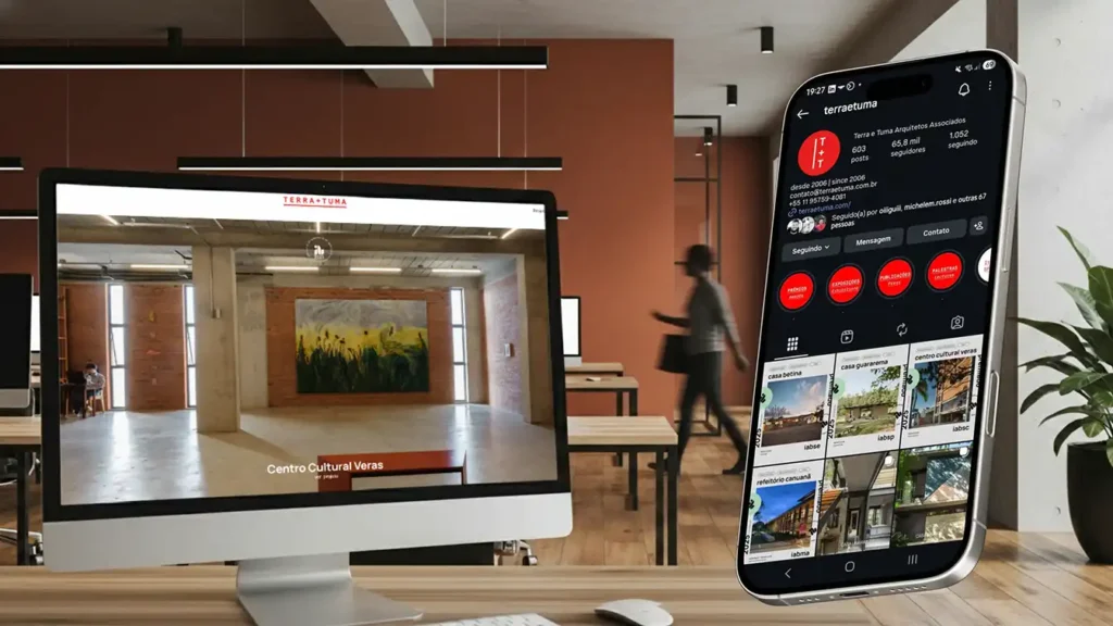 Vamos ser honestos: a maioria dos arquitetos trata presença digital como obrigação chata. Então posta uma foto de render no Behance, coloca três projetos no Instagram (sendo que dois são do TCC), e pronto: “estou na internet”.