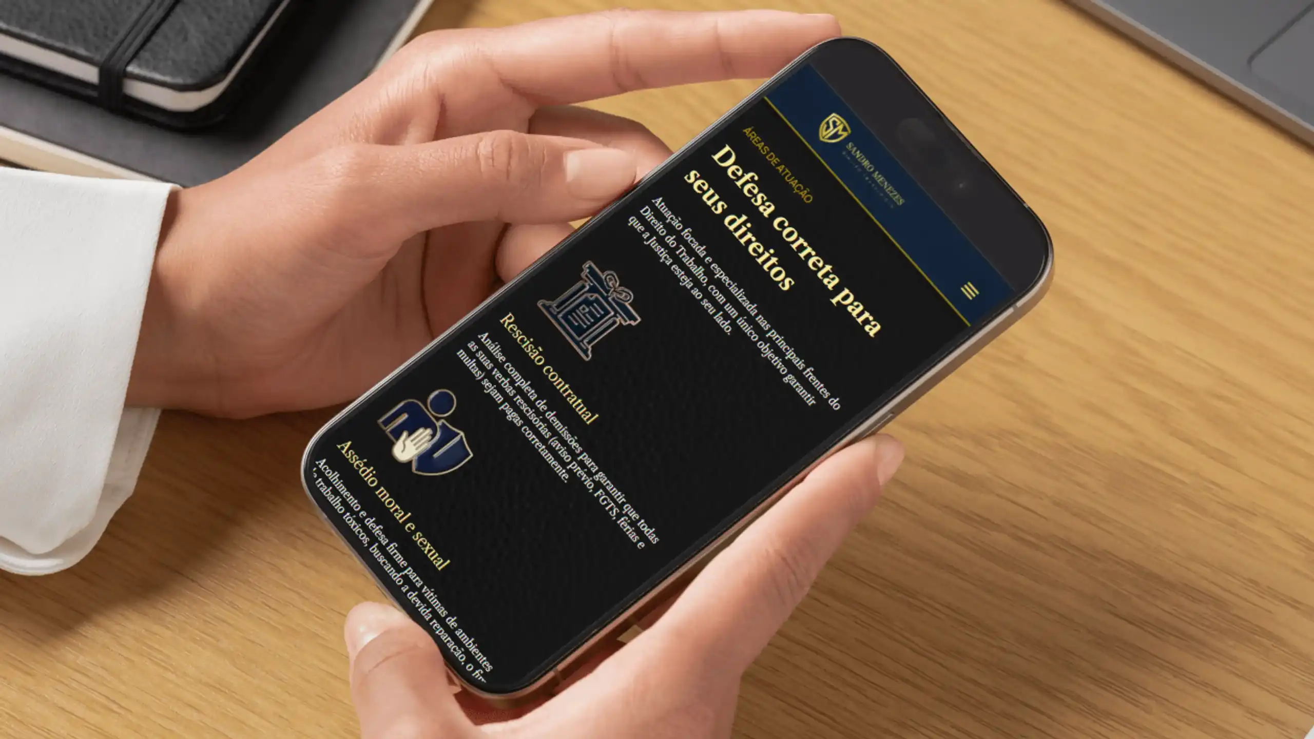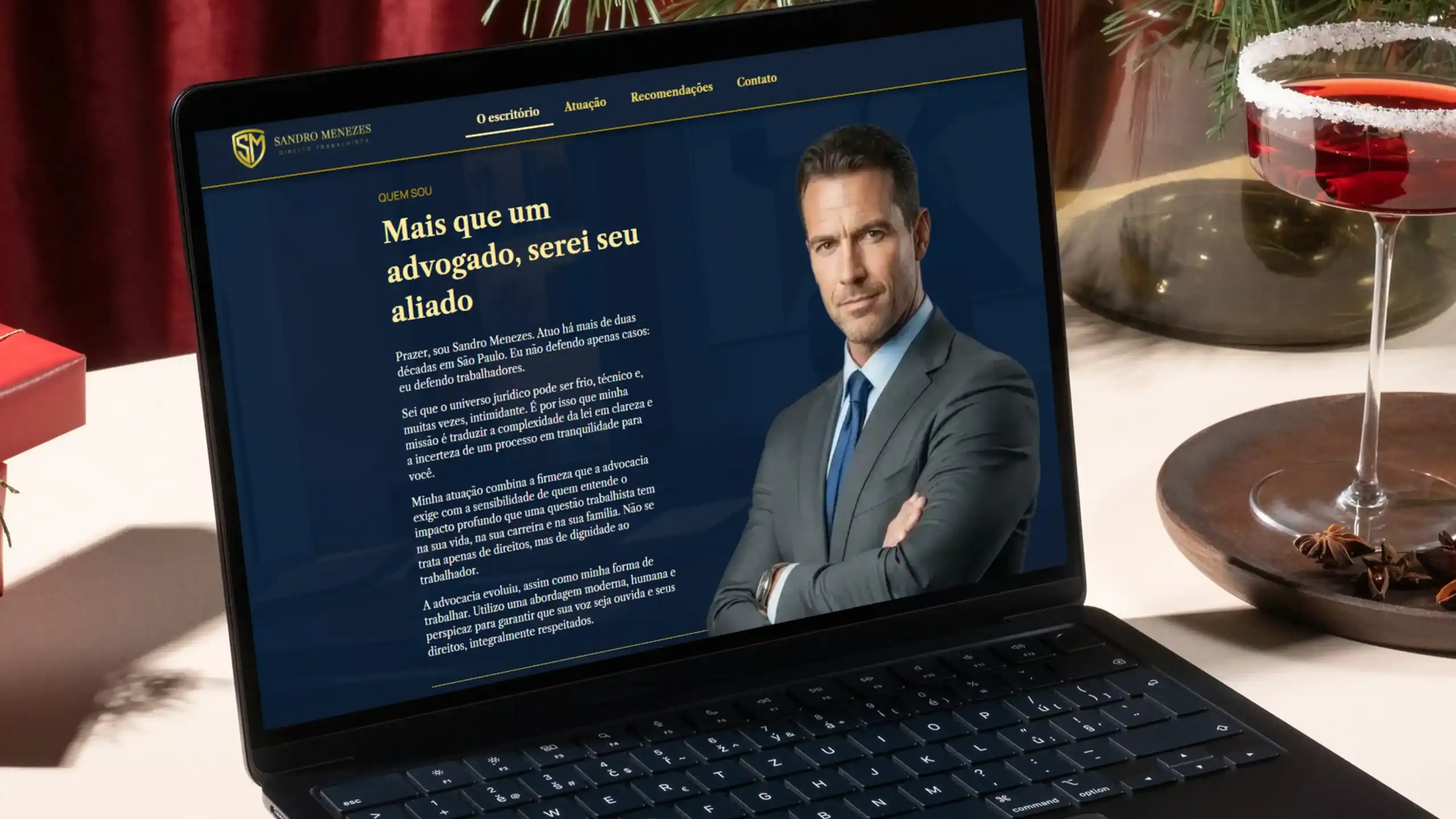 Sandro Menezes tinha 20 anos de experiência em advocacia trabalhista. Conhecia cada artigo da CLT como quem conhece a própria casa. Mas sua marca? Parecia ter saído de um catálogo dos anos 90. O desafio era transformá-lo em uma referência em advocacia humanizada, criando uma identidade visual sofisticada, um site que acolhesse de verdade e um vídeo que mostrasse o profissional por trás do processo.