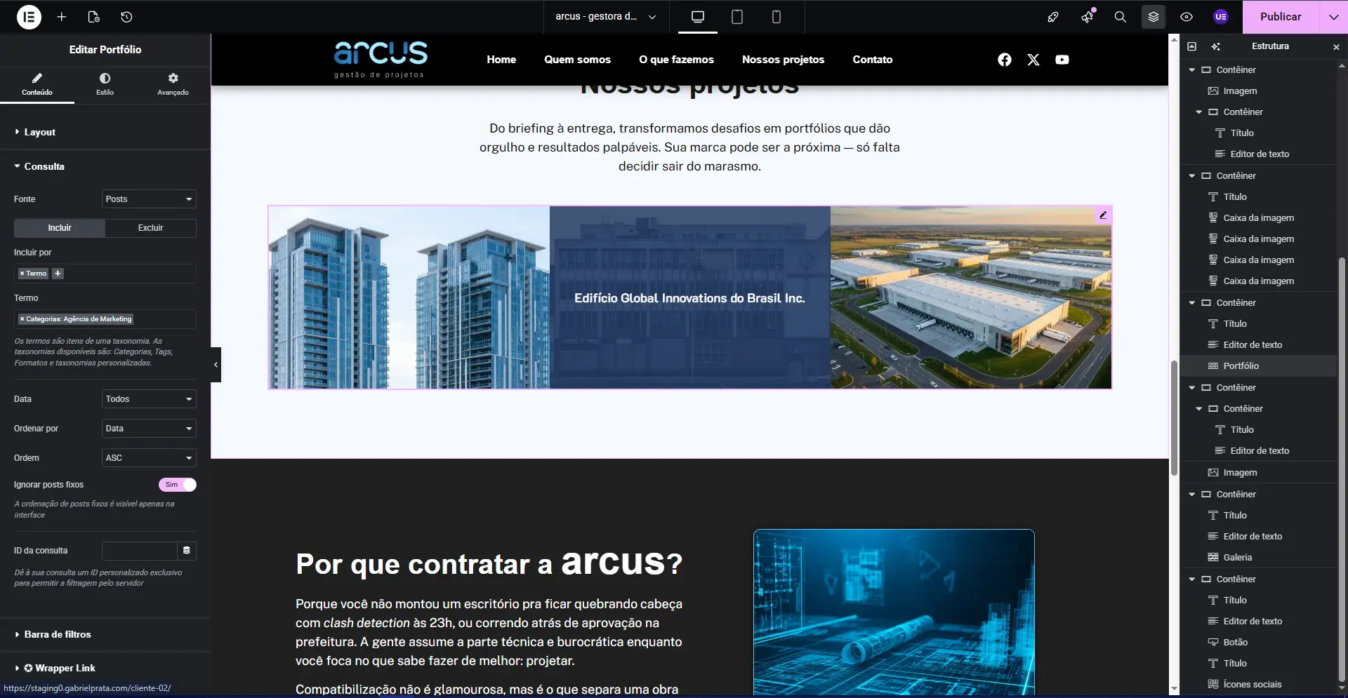 O fluxo da página foi pensado para educar e converter: o visitante entra sem saber exatamente o que é coordenação BIM, entende o valor ao longo da navegação e, no final, está pronto para tomar a decisão de contato.Usei Elementor Pro e WordPress, garantindo um site responsivo (funciona perfeitamente em desktop, tablet e mobile), com microinterações sutis (hover effects, transições suaves) e otimizado para conversão (CTAs estratégicos, formulários diretos, integração com WhatsApp).