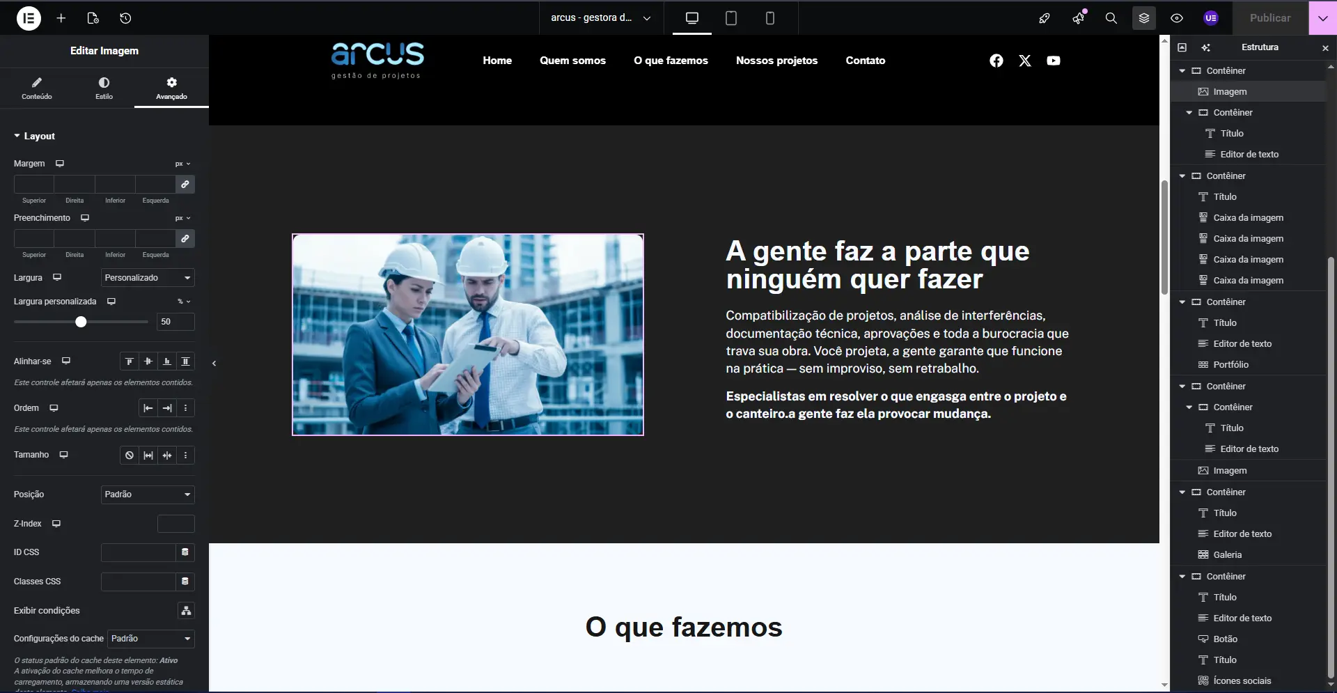 um website institucional completo e responsivo, focado em converter visitantes em clientes e apresentar a expertise técnica da equipe; e