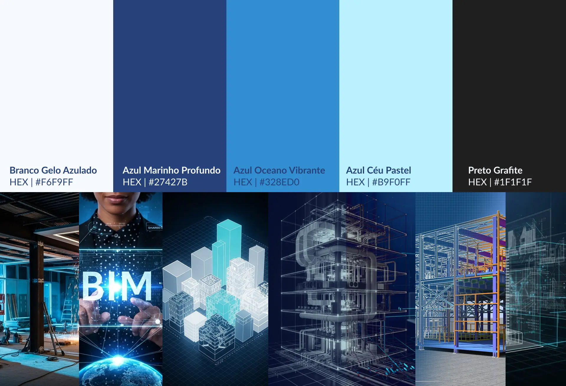 Quando chegaram até mim, tinham algo valioso: metodologia sólida baseada em BIM e uma equipe tecnicamente competente. Mas faltava uma identidade visual que comunicasse quem eram de verdade.