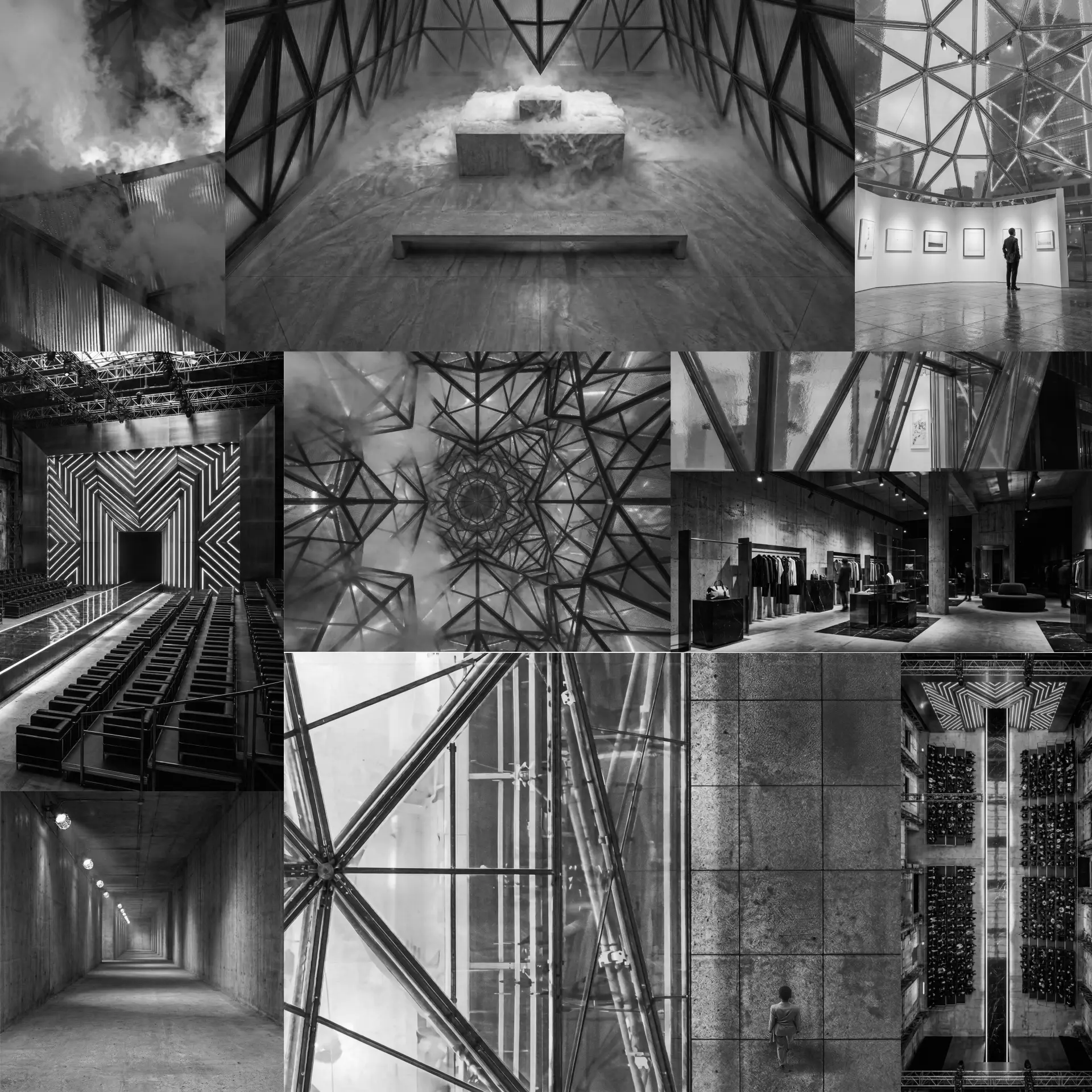 - ARCKHE Store: desloca a narrativa para a materialidade sensorial. Concreto, mármore e latão criam uma experiência de austeridade luxuosa.