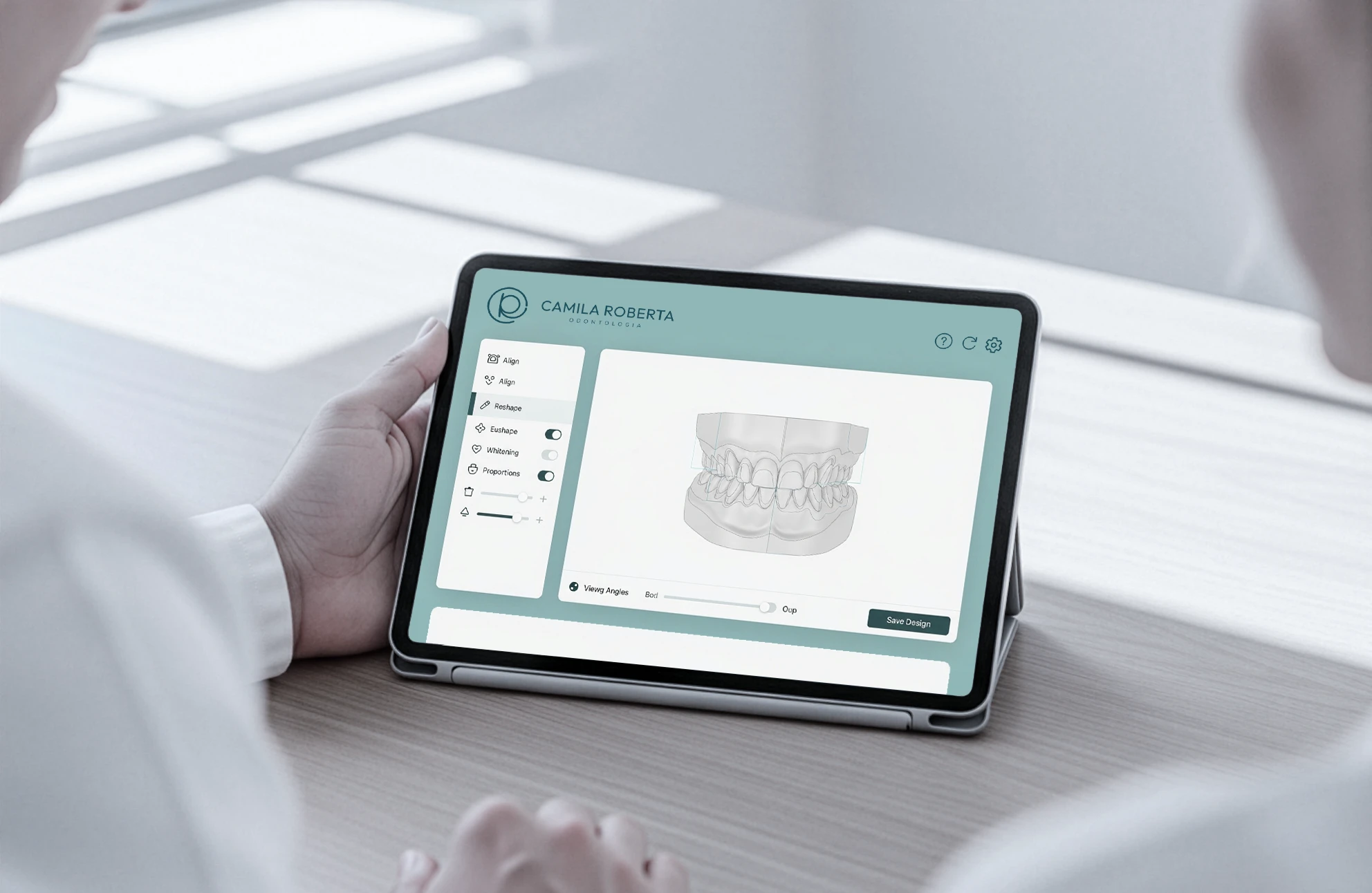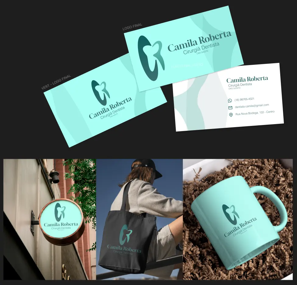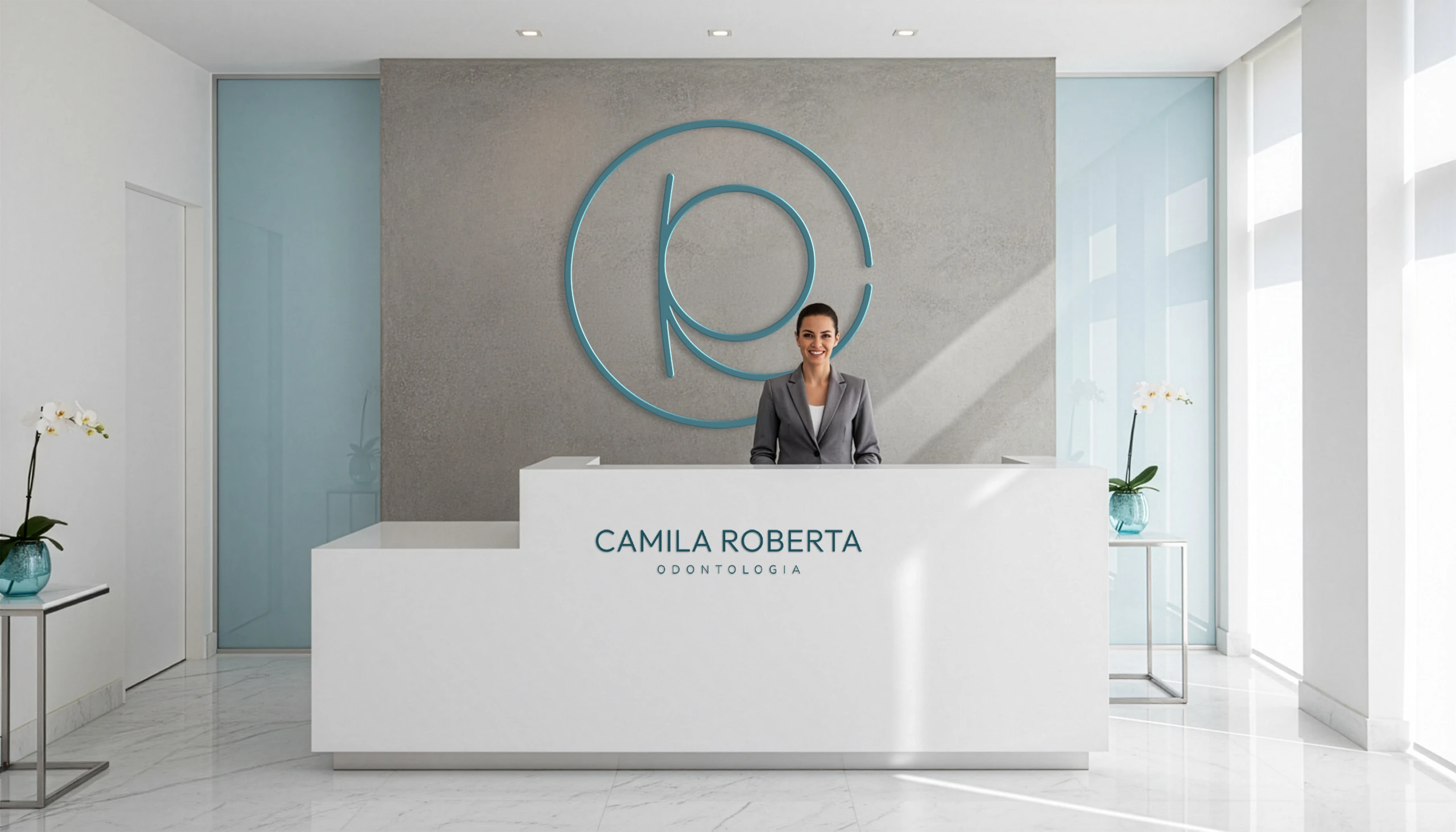 A Dra. Camila Roberta deixou de ter um “logo bonitinho” para assumir o protagonismo visual de uma cirurgiã-dentista de elite. O portfólio gerado não vende “dentes perfeitos de banco de imagens”, vende um procedimento seguro, higiênico e incrivelmente humano.